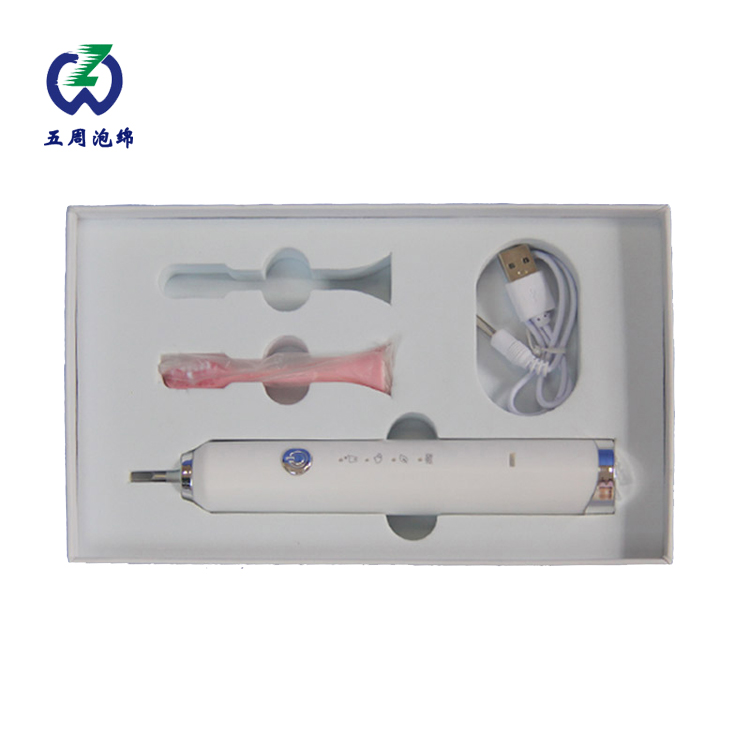 隨后,宋先生又提出另外一個問題,很多時候客戶使用完后,要么充電,要么放到包裝盒里。但是使用過程中,難免牙具表面會有水滴,如何解決此問題。對此我們針對這個問題決定在EVA內(nèi)托底部,增加一部分pu波浪海綿,海綿本身是具有吸水性的。為了更好的解決水滴問題,此次使用了35KG的高密度防火海綿,同時海綿帶有防靜電的功能。為什么要使用防靜電的海綿,以及需要防火功能。一是電動牙刷本身具有電池,電池在高溫高濕的情況下,可能會產(chǎn)生漏電的可能,所以需要選擇防靜電的海綿,以及帶有防火功能。牙具放置表面,一起到防震的效果,二起到吸水的效果。就算牙具上面有小水滴,也會通過這個防靜電波浪海綿吸收。起到雙重的效果。