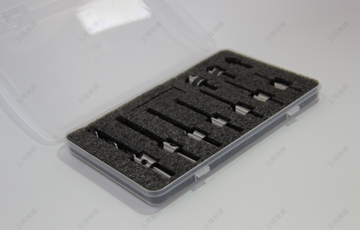 蘇州五周泡棉的定制內(nèi)襯采用黑色導(dǎo)電珍珠棉(表面電阻 10?-10?Ω),通過 CNC 雕刻形成 10 個獨立刀槽,每個槽位精準(zhǔn)匹配刀具直徑,誤差≤±0.03mm;槽底設(shè)計 2mm 緩沖墊層,保護刀刃不受壓;內(nèi)襯表面做疏水處理,防止金屬碎屑吸附;刀槽按尺寸矩陣排列,便于快速分類取用。